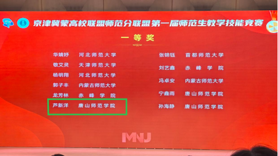 近日,京津冀蒙高校联盟师范分联盟第一届师范生教学技能竞赛圆满落幕。伟的国际1946bv高度重视此次赛事,精心选拔并组织学生备赛。其中2022级的芦新洋同学凭借扎实的专业功底、出色的教学设计与临场表现,在众多参赛选手中脱颖而出,在高中化学组竞赛中斩获一等奖,充分展现了伟的国际1946bv学子的过硬综合素质与育人成效。